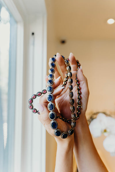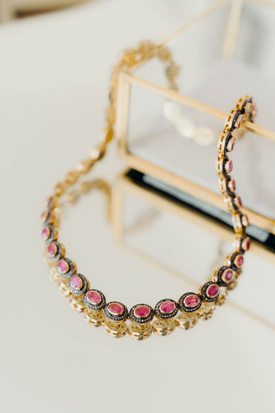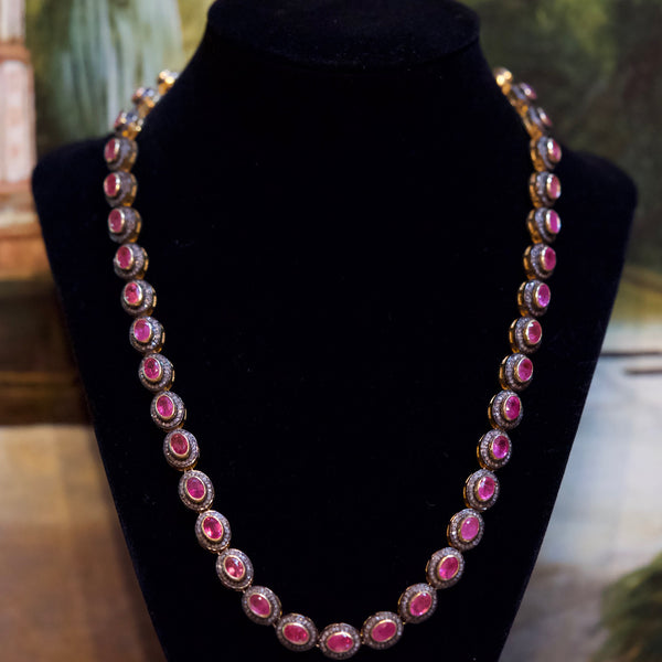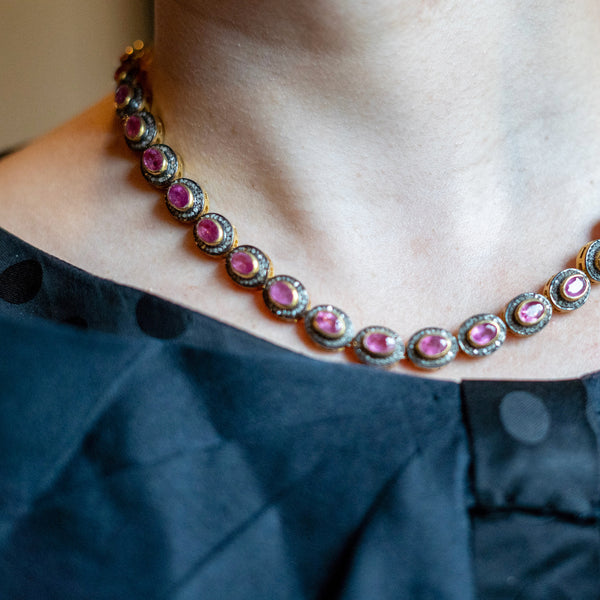 Pink tourmaline and diamond necklace. Set in silver with gold vermeil.